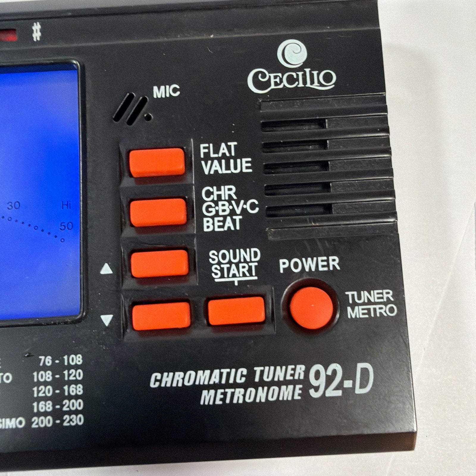 Cecilio 92-D chromatic tuner/metronome combo with LCD display (black). Powers on and appears to work properly, but only briefly checked. Shows light cosmetic wear from normal use. Includes the unit only; batteries, box, manual, and any cables are not included.